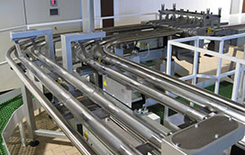 Transportadores de banda y modulares para envasado y almacenaje del producto.